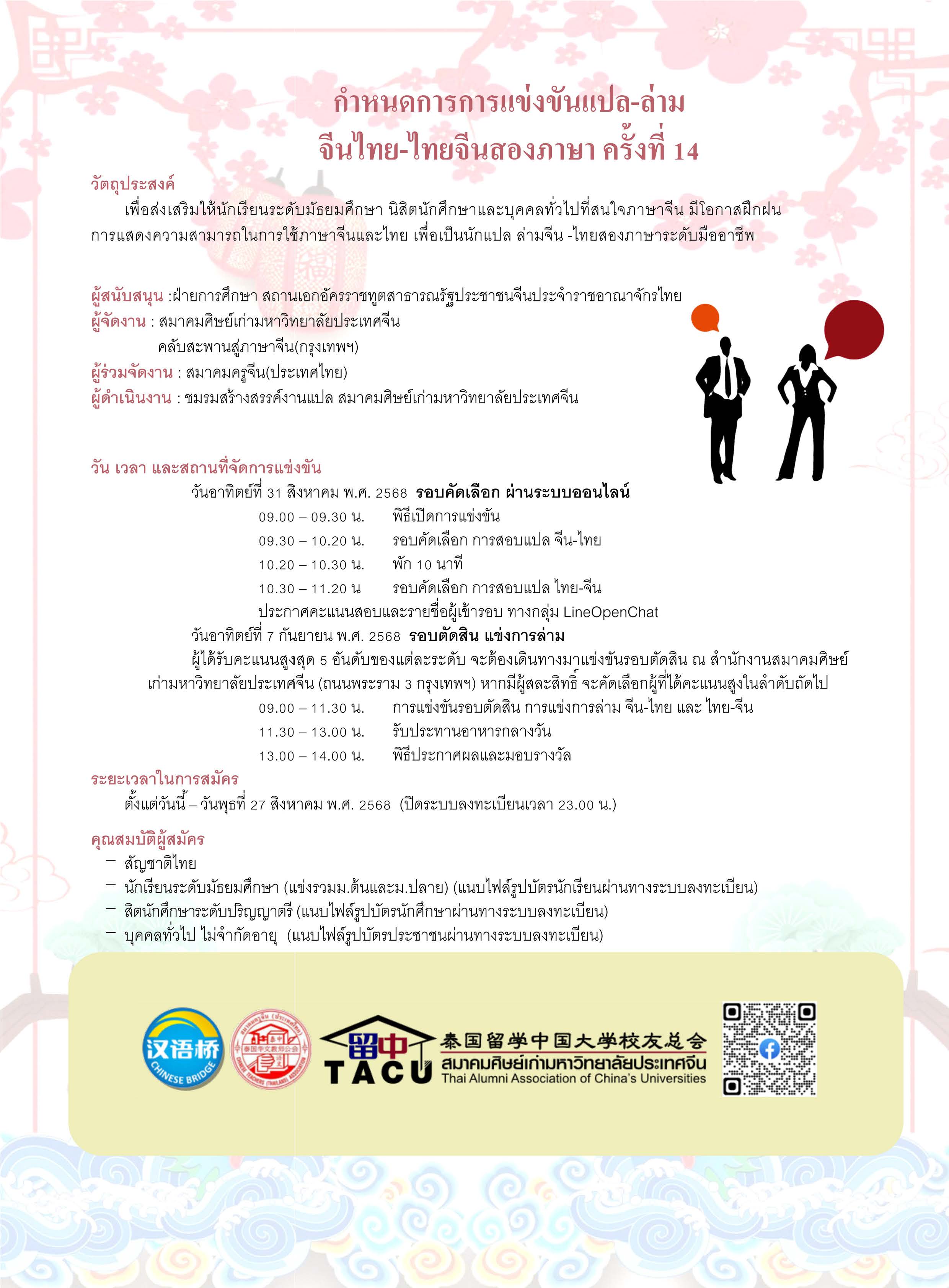 ผู้ร่วมจัดงาน : สมาคมครูจีน(ประเทศไทย)